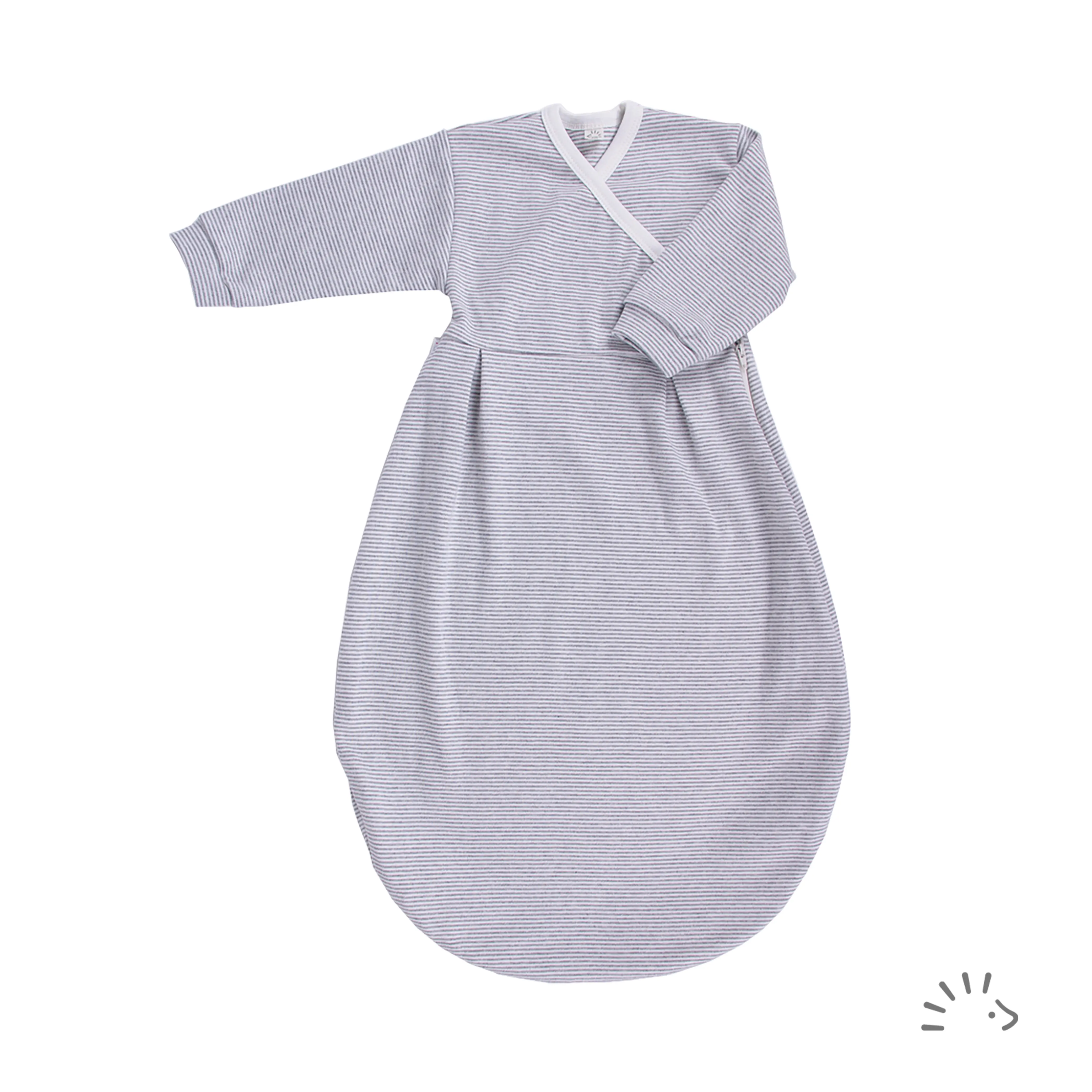 The inner sleeping bag made from certified organic cotton interlock can be used as a sleeping bag on warmer days or as an additional heat layer for our sleeveless sleeping bags in colder days. The overlapping chest part, which can be fixed on the inside by a snap makes it easy to put on and take off while the child is lying down. The Felinchen is surrounded with a cotton ribbon in the chest area. The generously cut shape provides enough space for your child´s movement. An extra-long two-way zip makes it easy to put sleeping bag on and take it off; especially when changing. Elastic cuffs on sleeve-ends ensure optimum grip.