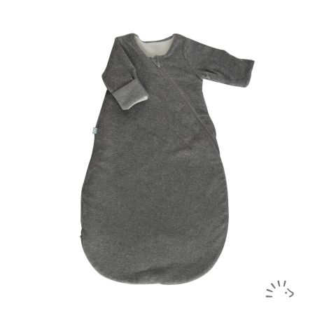 The sleeping bag newborn made from certified cotton is a cuddly, two layer, sleeping bag for your newborn baby. An extra-long two-way zip makes it easy to put sleeping bag on and take it off; especially when changing. With an extra cuff on sleeve-ends, hands can be kept warm. The generously cut shape provides your child enough space for movement.