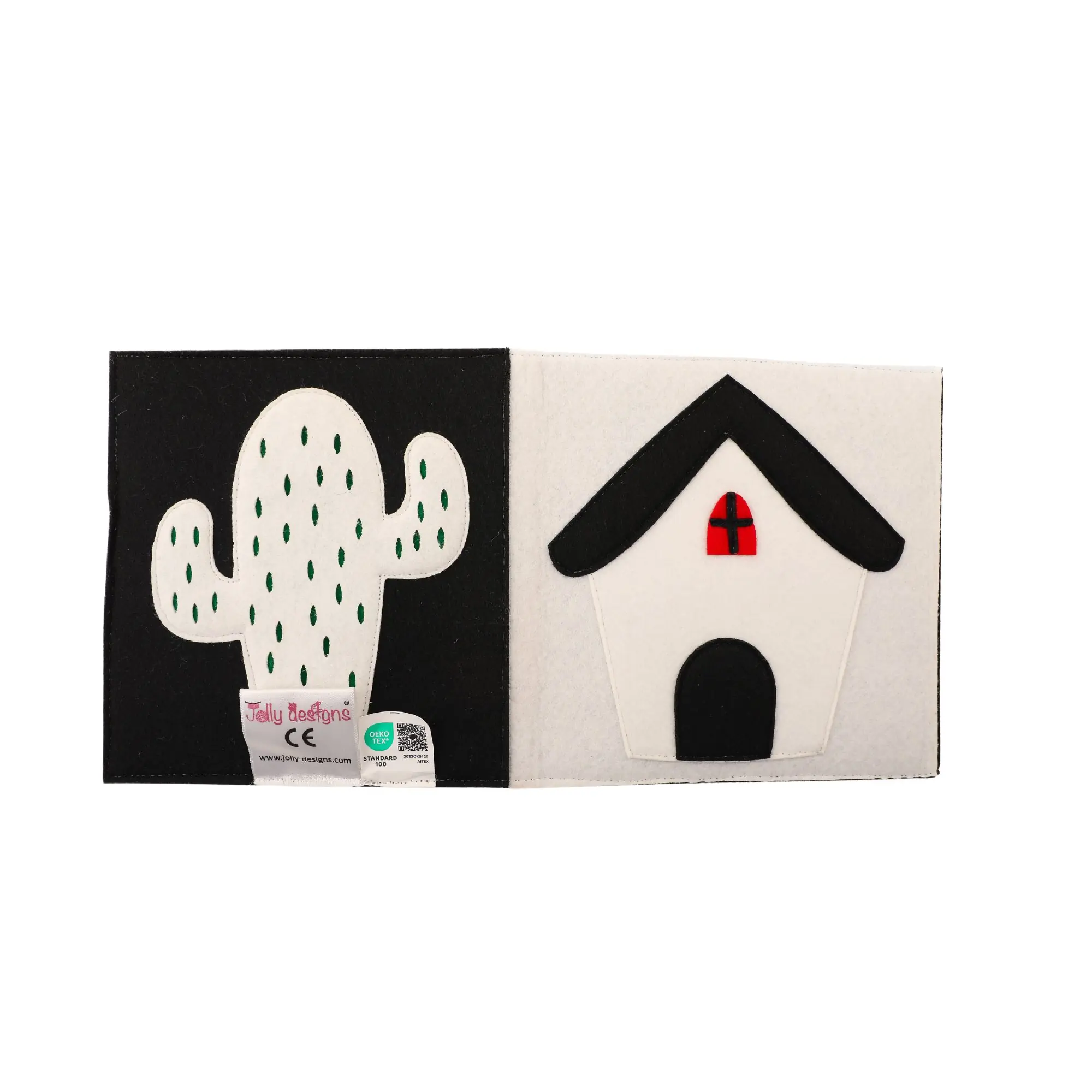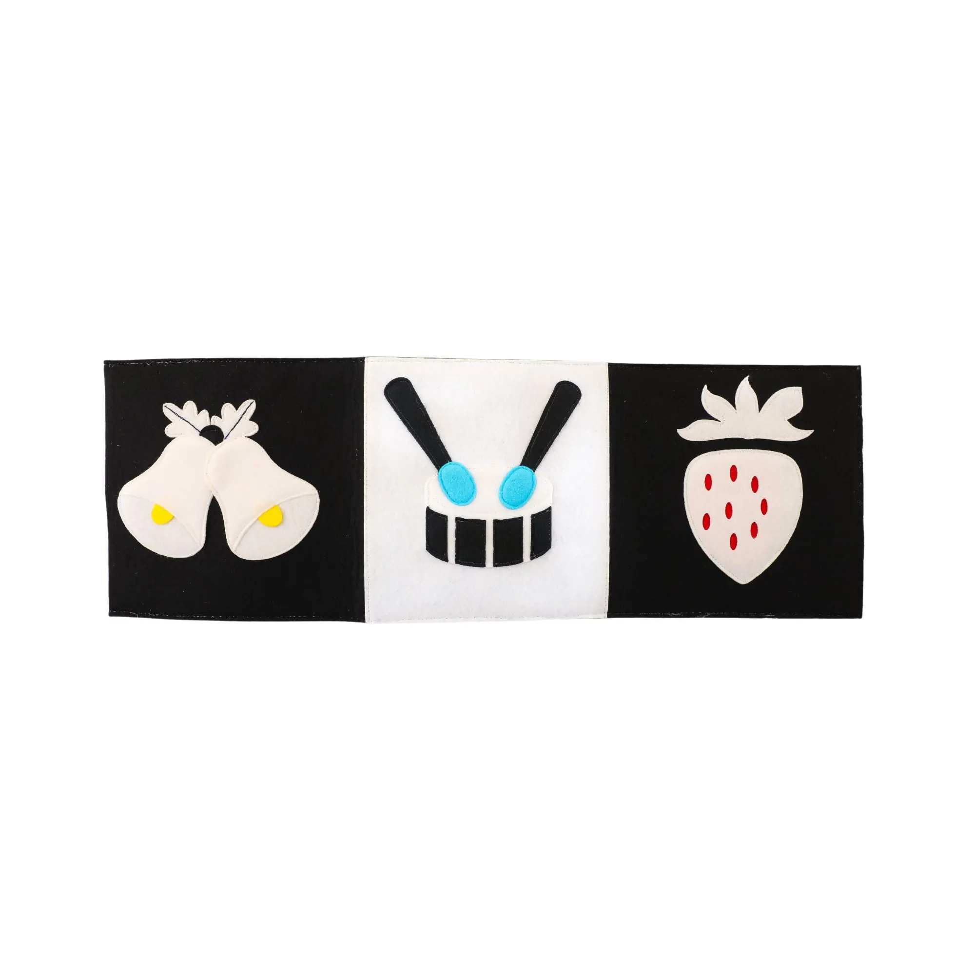 The "Black and White" Leporello by Jolly Designs offers strong black-and-white contrasts that stimulate babies' vision and promote visual perception.