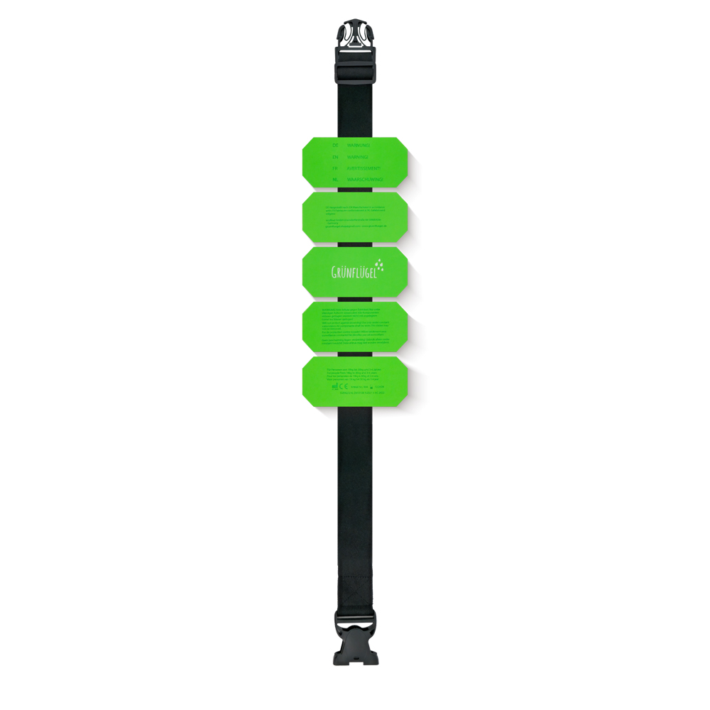 The Grünflügel Swim Belt is a safe and sustainable swimming aid for children learning to swim. Made from BIO-based TPE and GRS-certified recycled nylon, it is free from harmful substances and plasticizers.