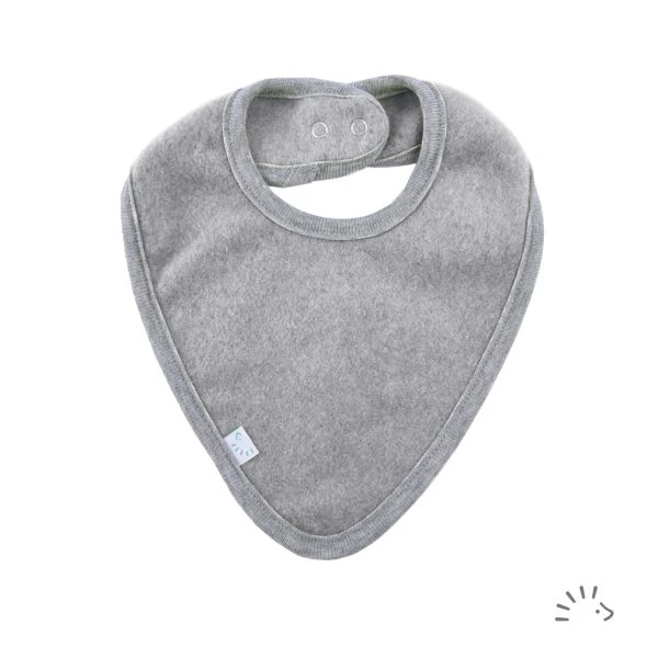 The triangular scarf fleece made from a single-layer certified cotton can be used as a fashion kerchief and as a practical cleaning cloth, where it especially proves to be helpful during “teething”. Easy to close with snaps, another push button allows size adjustment.