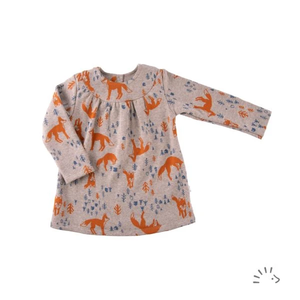 This adorable jacquard knit tunic with charming fox and forest motifs combines style and functionality in one garment. It is made from high-quality jacquard knit and consists of 100% certified organic cotton (GOTS). The tunic features a practical snap closure at the back, making it easy to put on and take off.