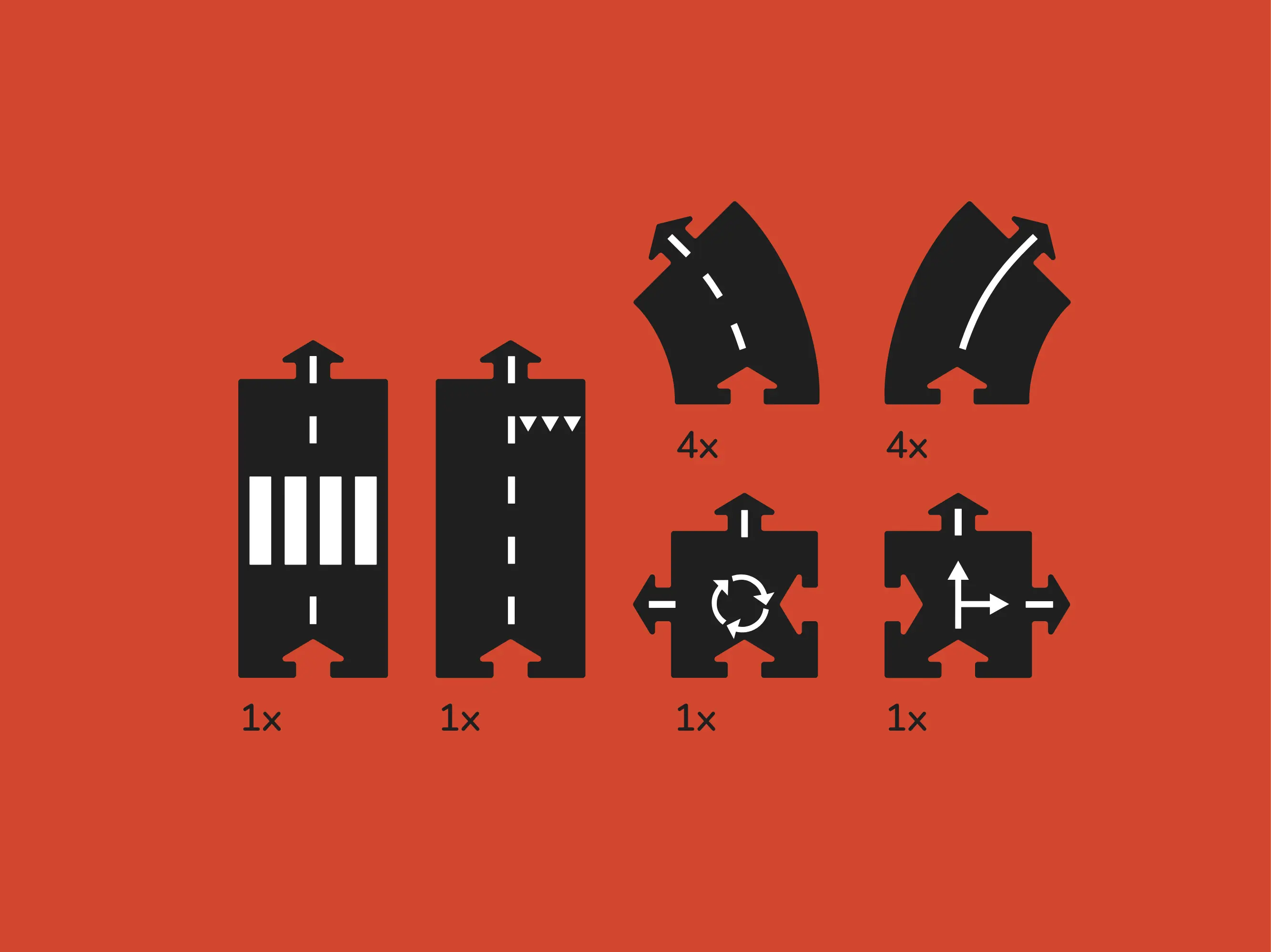 The set consists of easy-to-connect roads made of high-quality rubber.