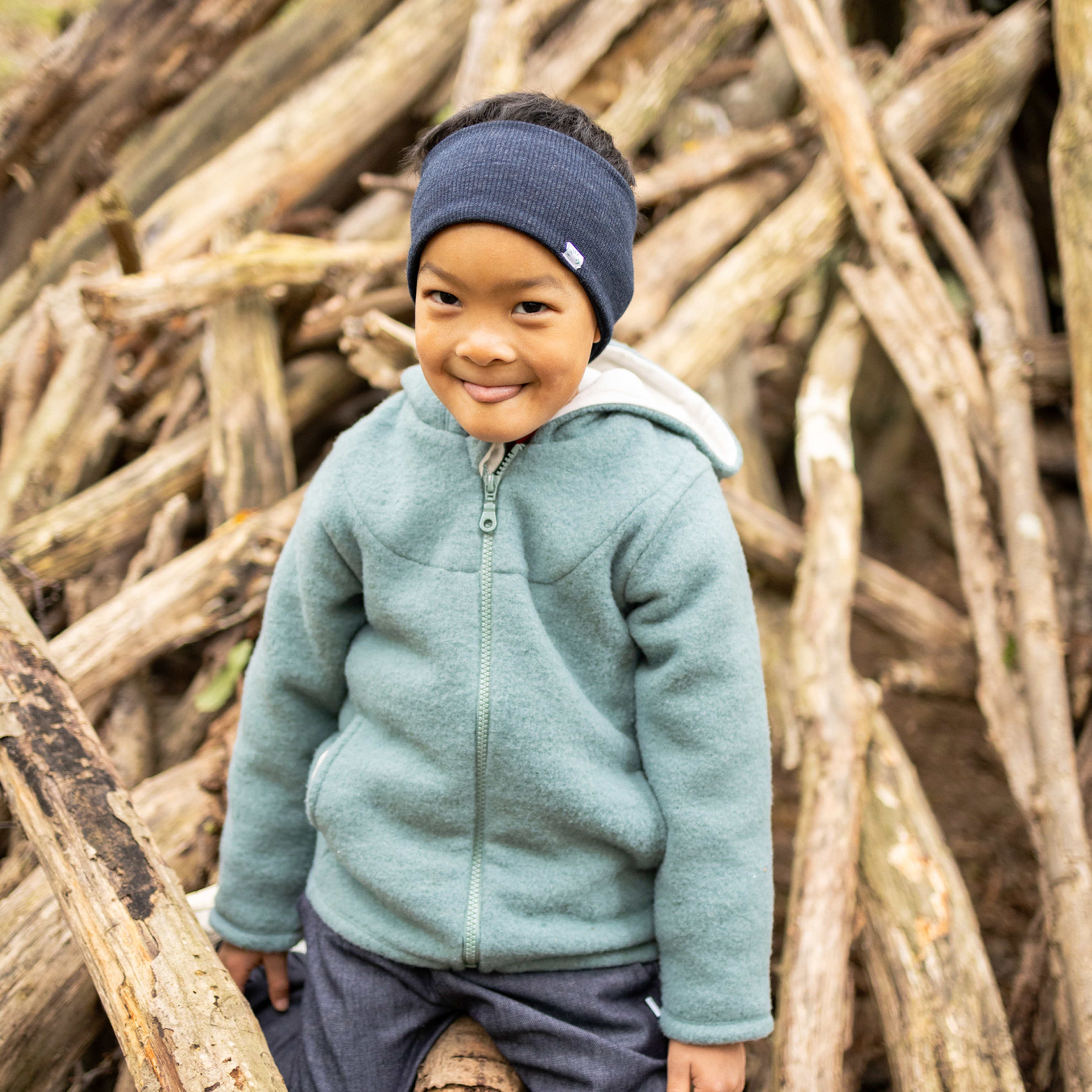 This finely knitted headband made from certified organic wool keeps little ears warm on chilly days. The high-quality wool blend (97% wool, 3% elastane) offers natural temperature regulation – keeping the head comfortably warm without overheating.