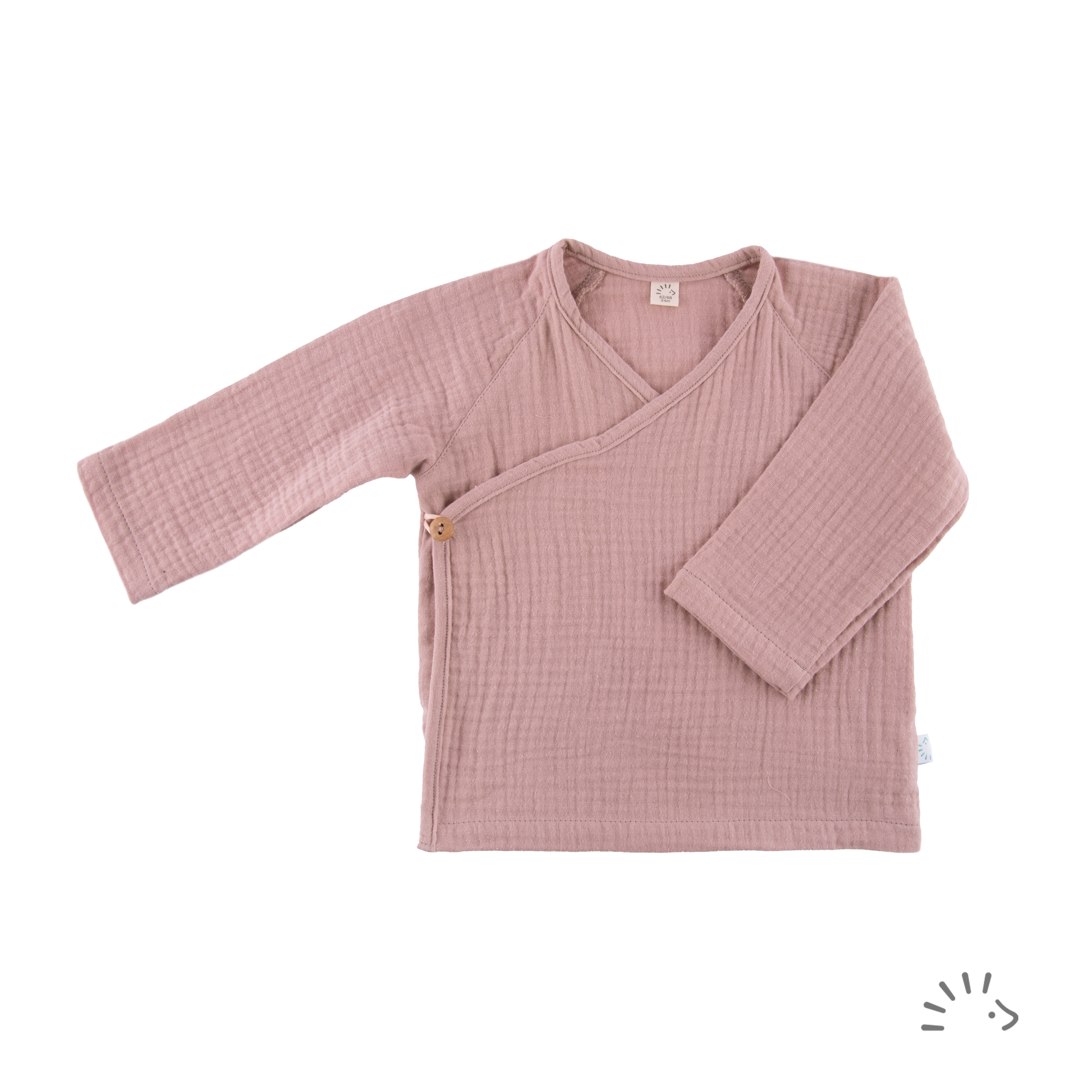 The iobio wrap shirt, made from 100% GOTS-certified organic cotton, offers comfort and sustainability. Its airy muslin fabric is extra soft on delicate baby skin and ensures a pleasant wearing experience—perfect for warm days. The practical snap button closure allows for quick and easy dressing. With long sleeves, it provides natural sun protection without compromising breathability.